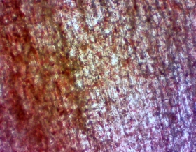 În câmpul microscopic se observă celulele poligonale prozenchimatice în care se află câte un nucleu şi numeroase cromoplaste. Cromoplastele au formă aciculară, dreptunghiulară sau ovoidală. Ele sunt înconjurate de citoplasmă abundentă. În ceea ce privește modul de organizare al celulelor, acestea sunt dispuse în șiruri sau coloane paralele.