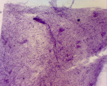 Fig. 1 Structura țesutului nervos, obiectiv 4X |